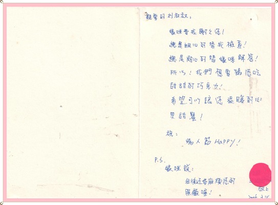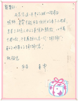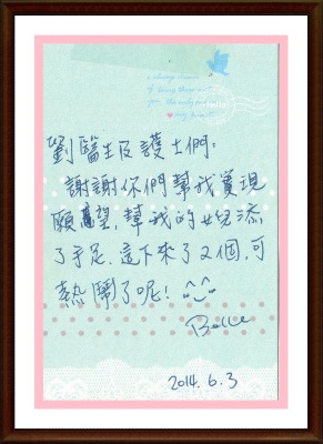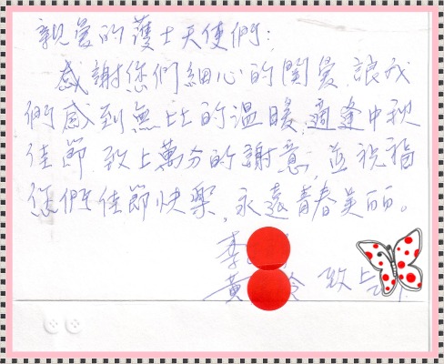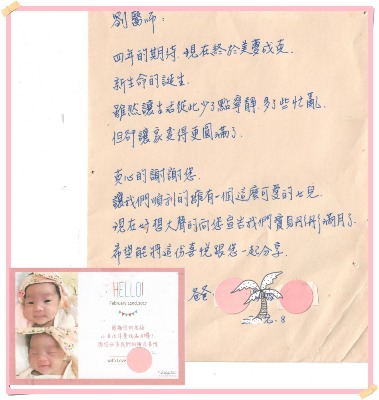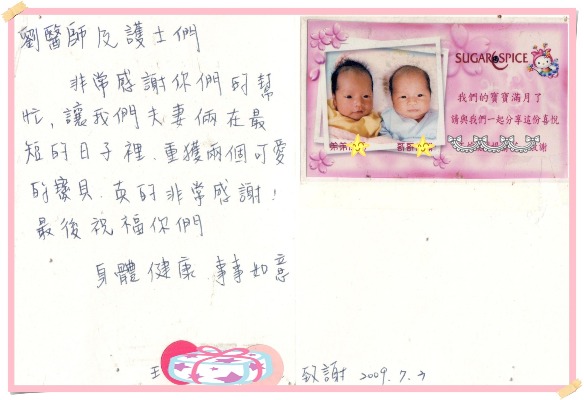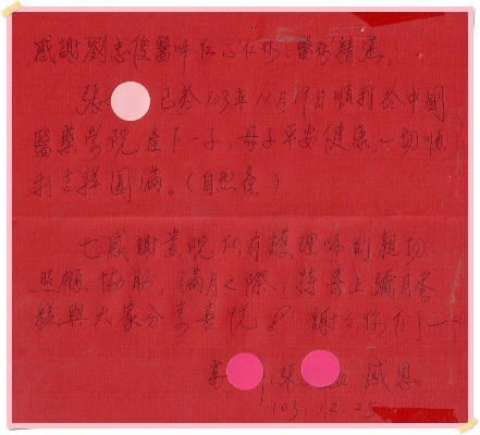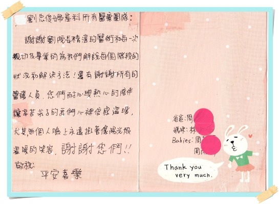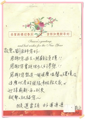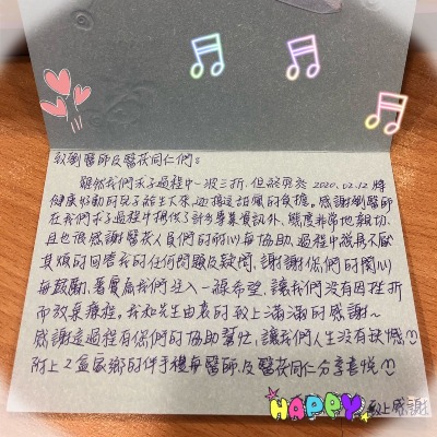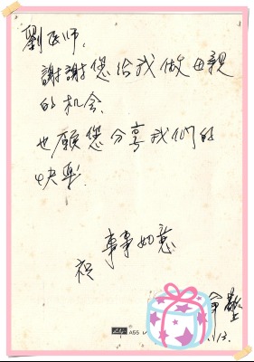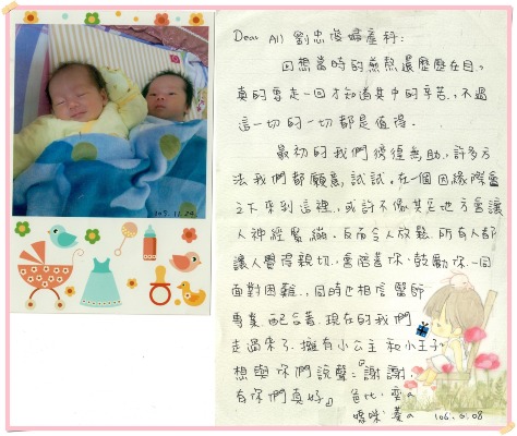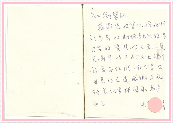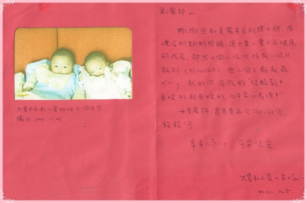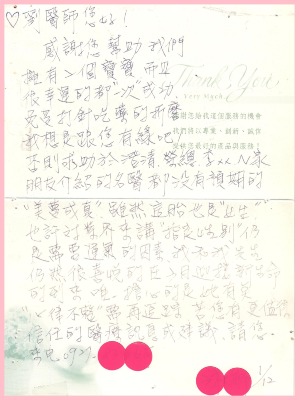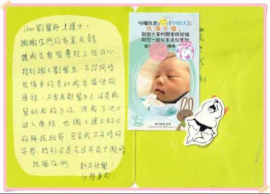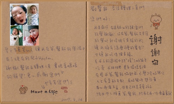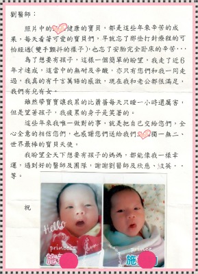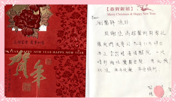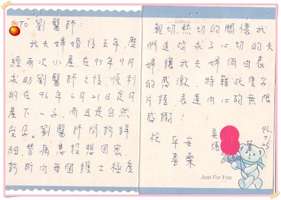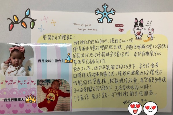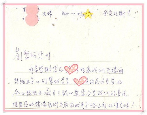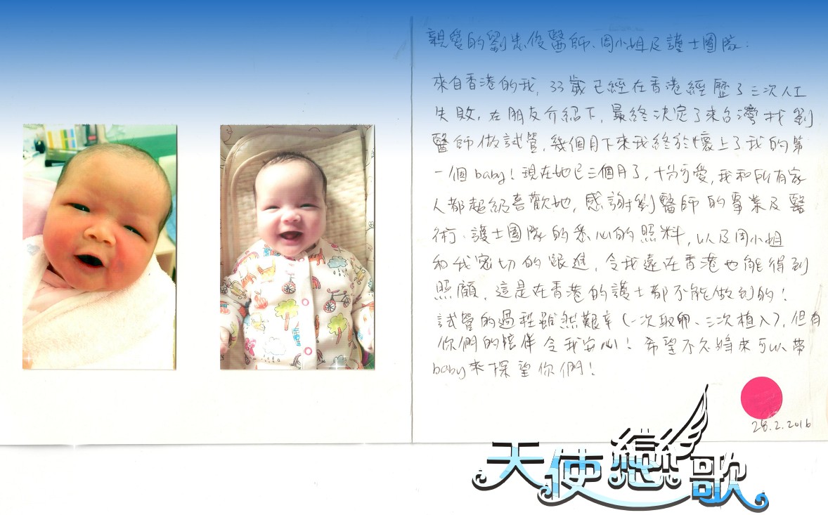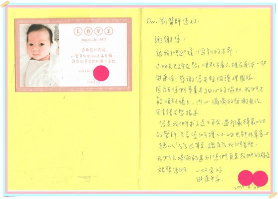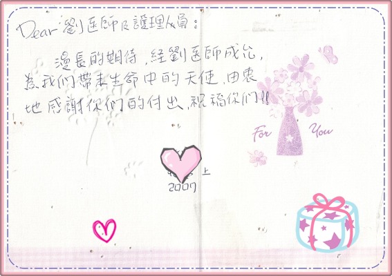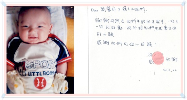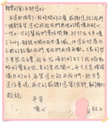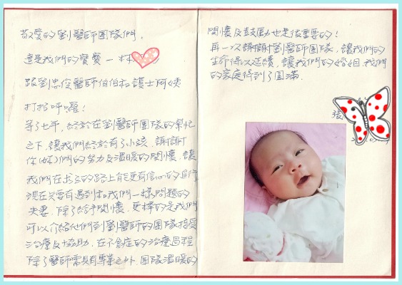 Dear劉醫生及護士們: 記得第一次懷著不安的心晴來 […]