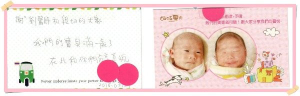 恭喜!蒙古姑娘~ 馬小姐雙胞胎寶寶滿月囉! 記得當時 […]