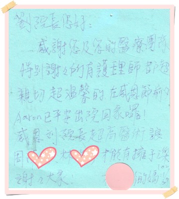 劉醫師、各位護理人員們您們好: 我是♥♥,在這誠心的 […]